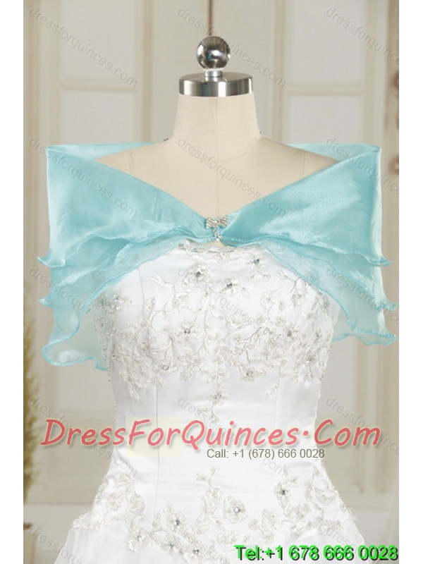 2015 Classical Strapless Beading Quinceanera Dresses in Aqual Blue