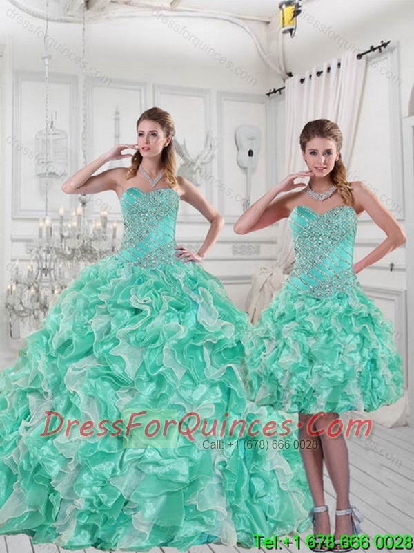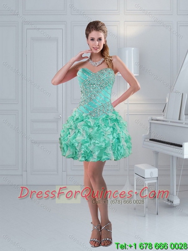 2015 Classical Sweetheart Quinceanera Dresses in Apple Green with Ruffles and Beading