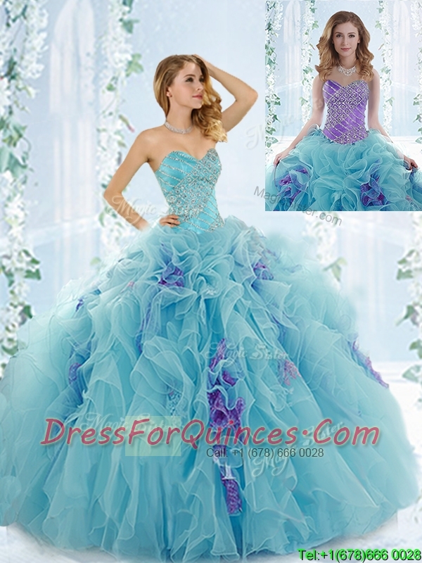 2016 Classical Aque Blue Detachable Quinceanera Gowns with Beading and Ruffles