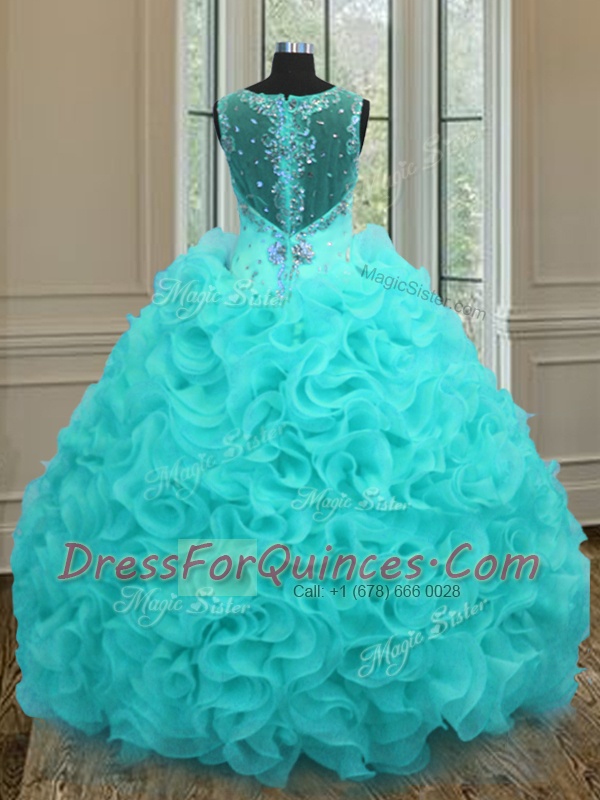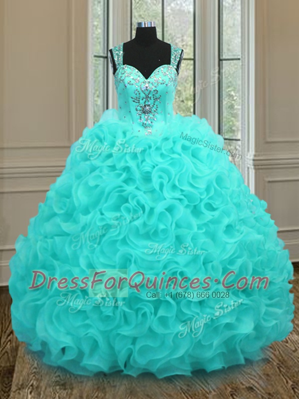 Admirable Floor Length Aqua Blue Quince Ball Gowns Straps Sleeveless Zipper