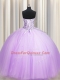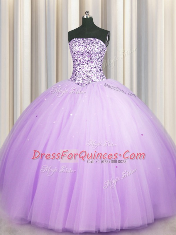 Amazing Sequins Really Puffy Floor Length Ball Gowns Sleeveless Lavender 15 Quinceanera Dress Lace Up