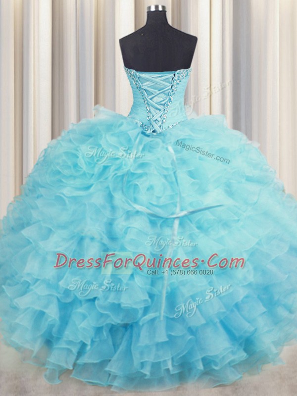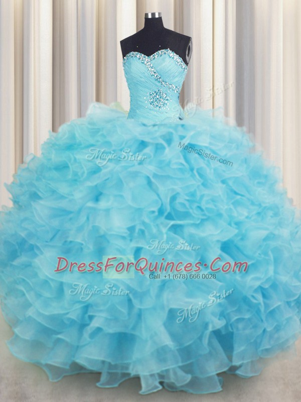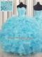 Aqua Blue Sleeveless Beading and Ruffles Floor Length Sweet 16 Quinceanera Dress