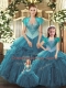 Ball Gowns Sweet 16 Dresses Teal Straps Tulle Sleeveless Floor Length Lace Up