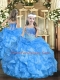 Beautiful Baby Blue Sweetheart Lace Up Beading and Ruffles 15 Quinceanera Dress Sleeveless
