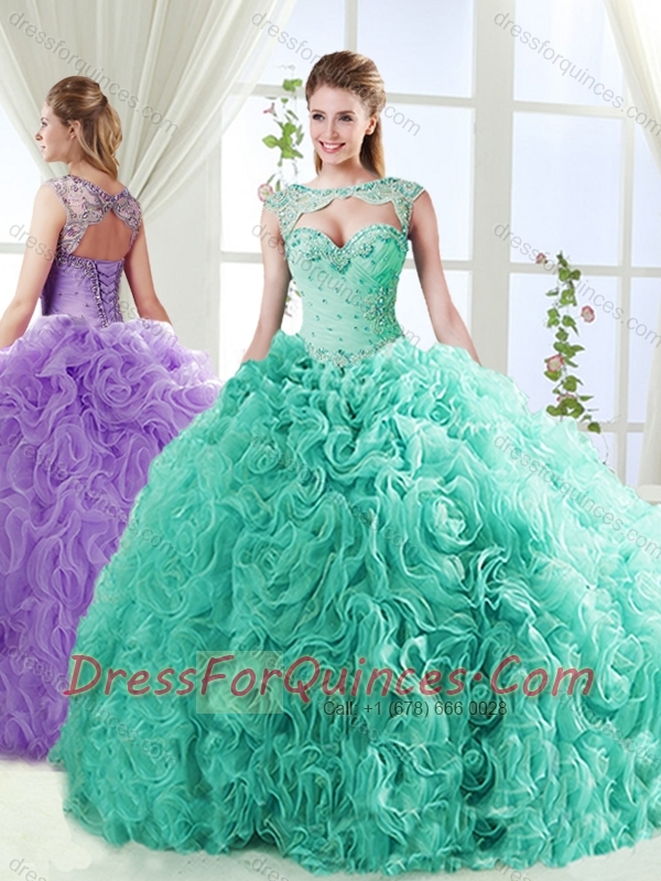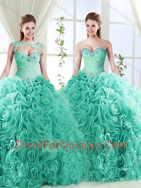 Big Puffy Brush Train Detachable Quinceanera Dresses with Beading and Appliques