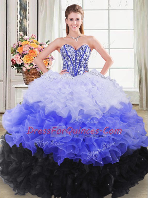 Captivating Ball Gowns 15th Birthday Dress Multi-color Sweetheart Organza Sleeveless Floor Length Lace Up