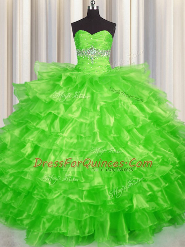 Captivating Sweetheart Sleeveless Organza Sweet 16 Dresses Beading and Ruffled Layers Lace Up