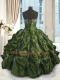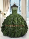 Charming Floor Length Lace Up Ball Gown Prom Dress Green for Military Ball with Beading and Pick Ups