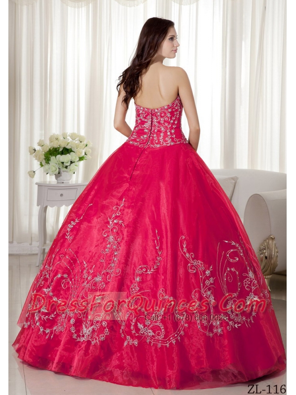 Cheap Ball Gown With Sweetheart Organza Beading and Embroidery For Classical Quinceanera Dress