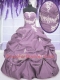 Cheap Lilac Ball Gowns Strapless Sleeveless Taffeta Floor Length Lace Up Appliques and Ruching and Pick Ups 15 Quinceanera Dress
