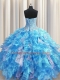 Cheap Visible Boning Baby Blue Ball Gowns Sweetheart Sleeveless Organza and Sequined Floor Length Lace Up Beading and Ruffles and Sequins Sweet 16 Dresses