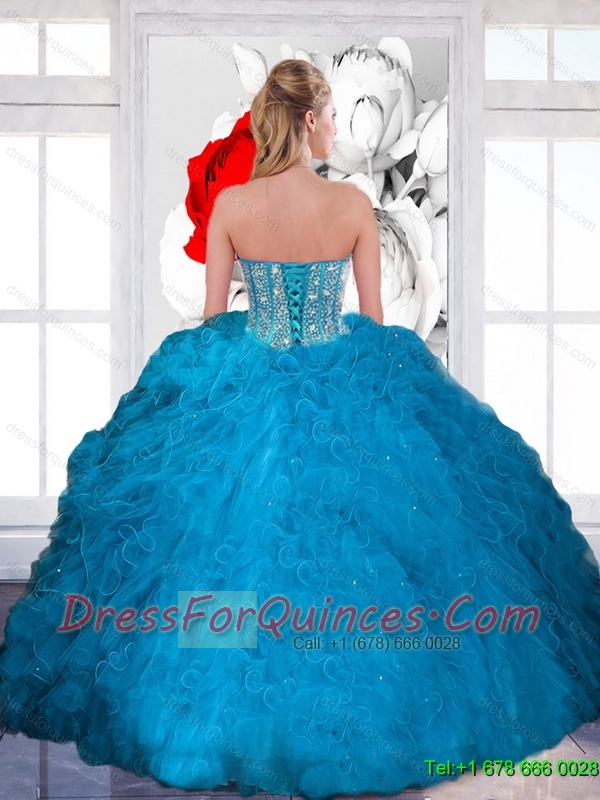 Classical Beading and Ruffles Sweetheart Teal Quinceanera Dresses for 2015