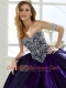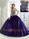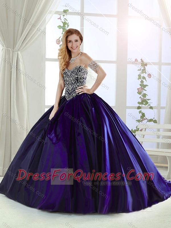 Classical Brush Train Beaded Bodice Purple Quinceanera Gown in Taffeta