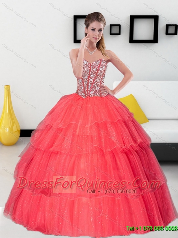 Classical Layers Sweetheart Quinceanera Dresses in Coral Red