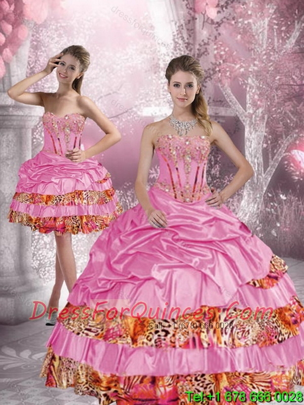 Classical Leopard Printed Quinceanera Dresses with Beading and Pick Ups for 2015