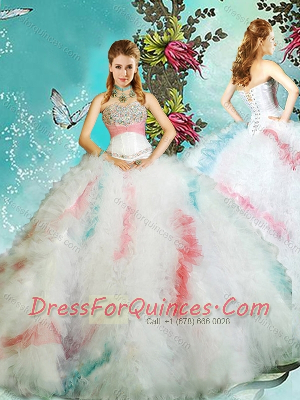 Classical Puffy Skirt Sweet 16 Dress with Beaded Bust and Ruffles