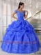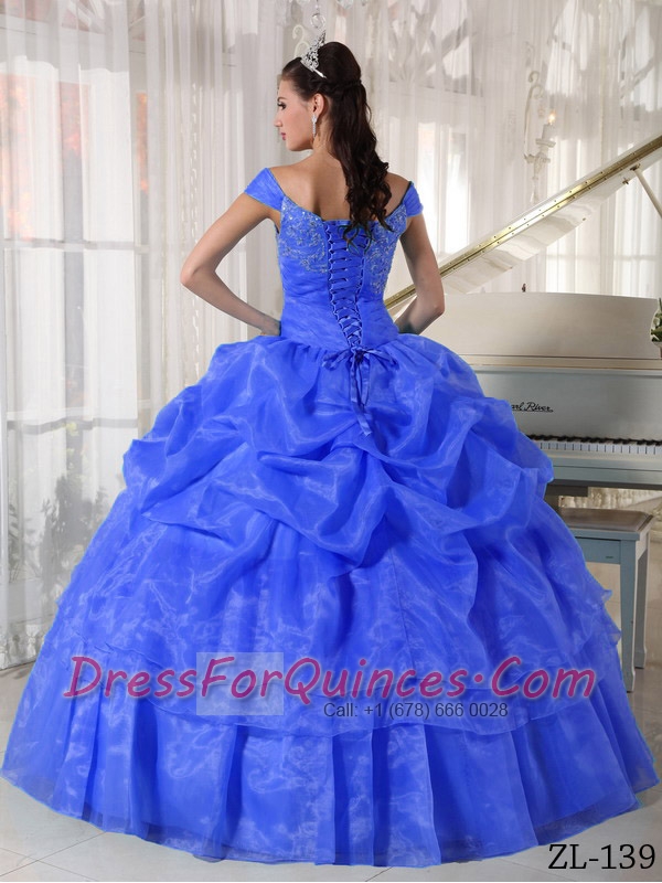 Classical Quinceanera Dresses In Blue Ball Gown Off The Shoulder With Taffeta and Organza Beading