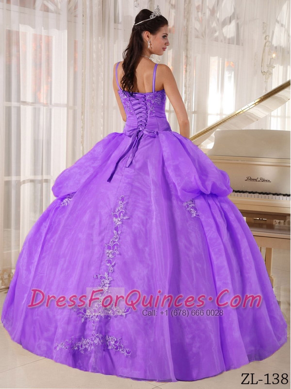 Classical Quinceanera Dresses In Purple Ball Gown With Spaghetti Straps and Organza Appliques