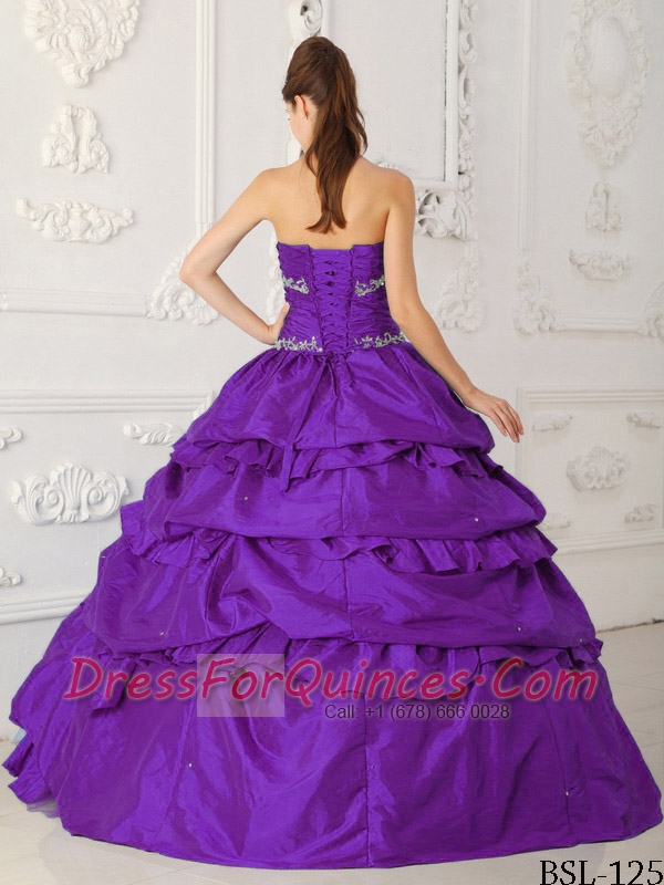 Classical Quinceanera Dresses In Purple Sweetheart Made With Taffeta and Tulle With Appliques And Beading