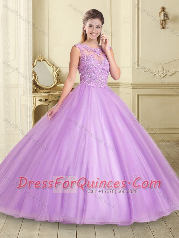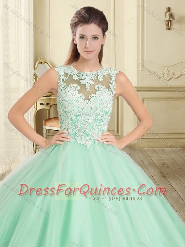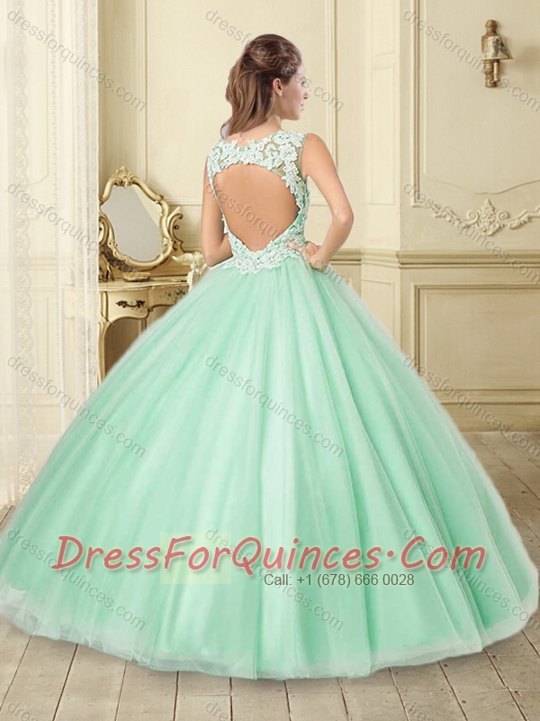 Classical Really Puffy Applique Scoop Sweet 16 Dress with Open Back