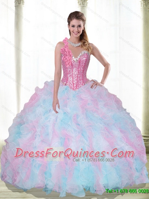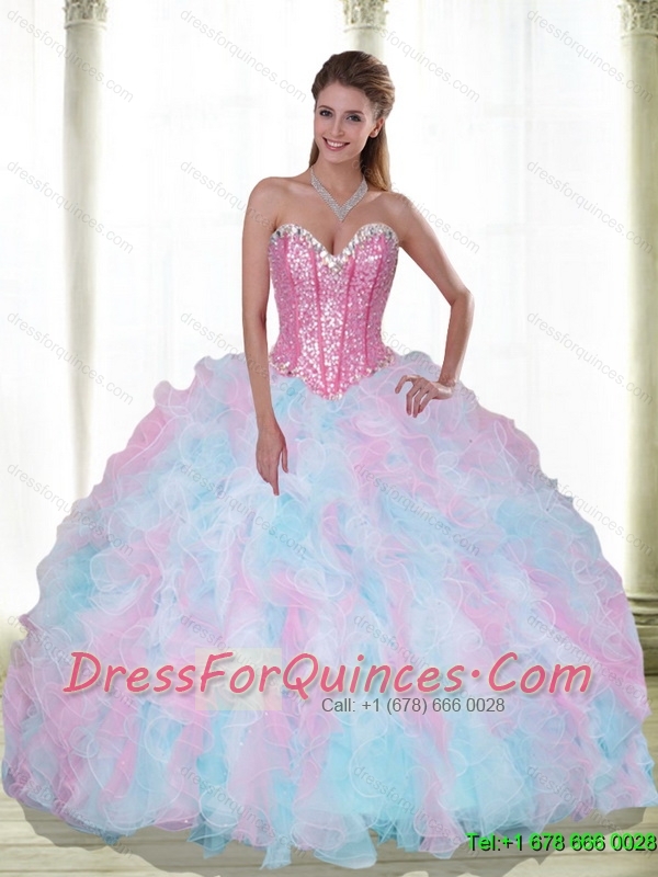 Classical Sweetheart Beading and Ruffles Multi Color Quinceanera Dresses