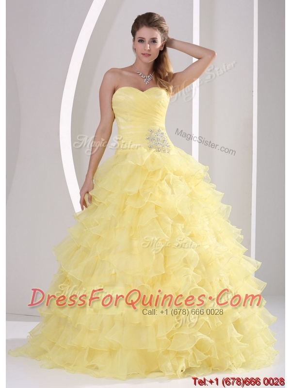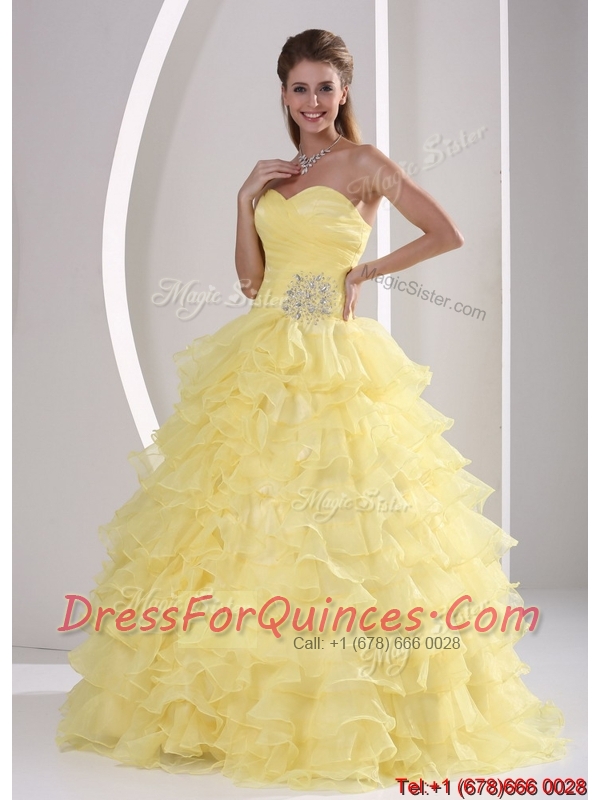 Classical Sweetheart Quinceaners Gowns with Appliques and Ruffled Layers