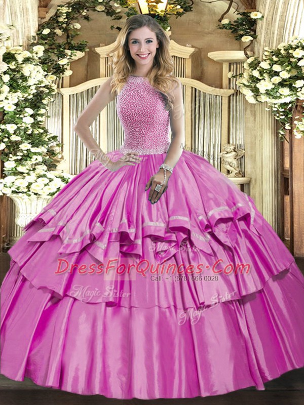 Custom Designed Lilac Sleeveless Floor Length Beading and Ruffled Layers Lace Up 15th Birthday Dress