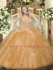 Custom Made Gold Scoop Neckline Beading and Ruffles Sweet 16 Dress Sleeveless Zipper