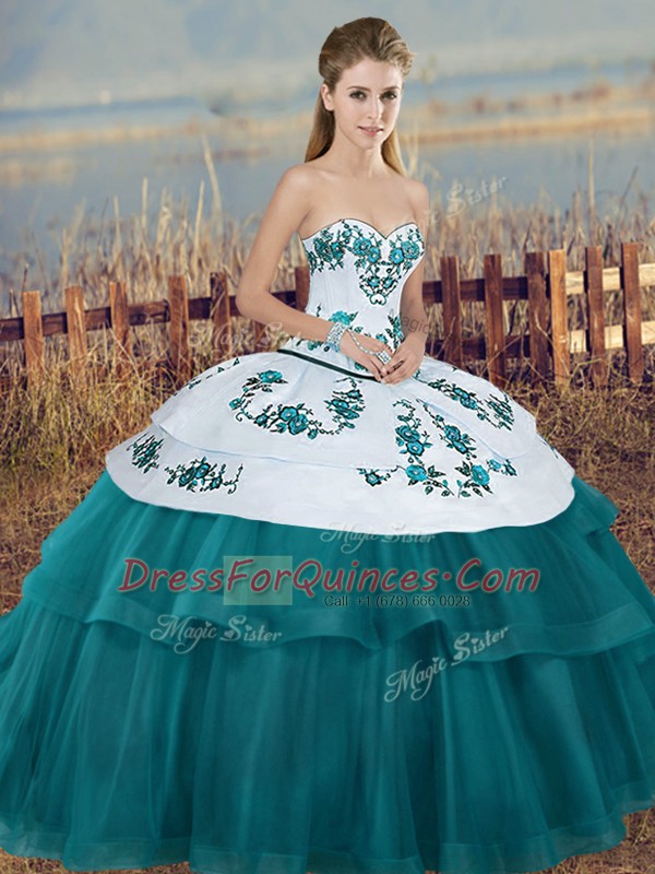 Cute Ball Gowns Ball Gown Prom Dress Teal Sweetheart Tulle Sleeveless Floor Length Lace Up