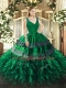 Dark Green Ball Gowns Organza V-neck Sleeveless Beading and Ruffles Floor Length Zipper 15 Quinceanera Dress