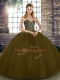 Deluxe Brown Ball Gowns Beading 15 Quinceanera Dress Lace Up Tulle Sleeveless Floor Length