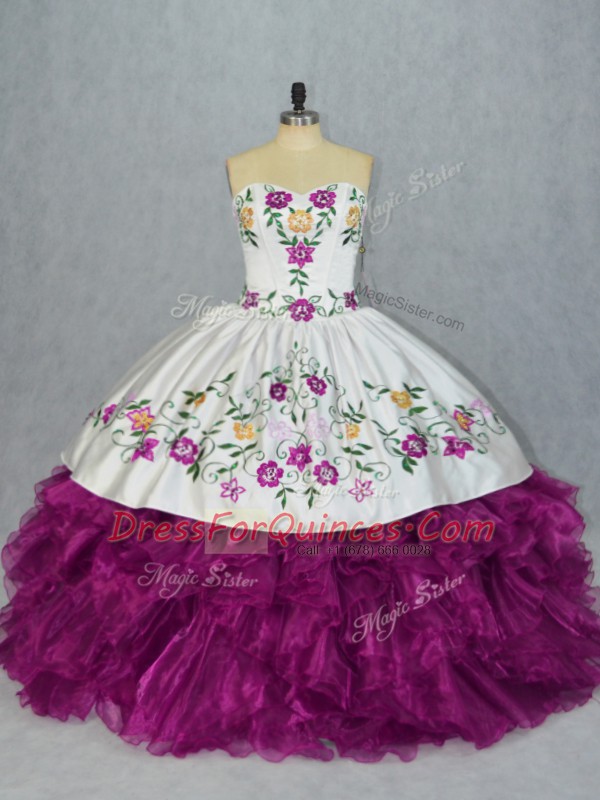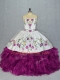 Deluxe Fuchsia Sleeveless Embroidery and Ruffles Floor Length Sweet 16 Dresses