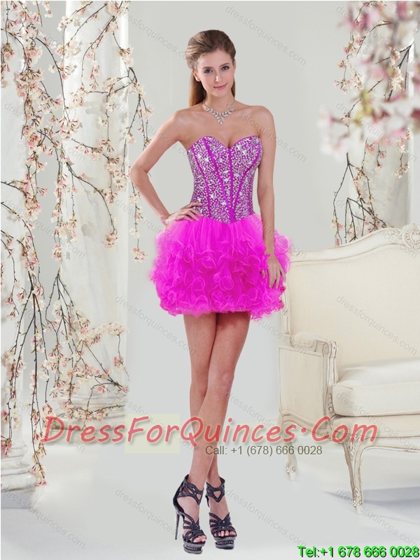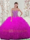 Detachable and Classical Quinceanera Dresses with Beading and Ruffles in Fuchsia for 2015 Spring