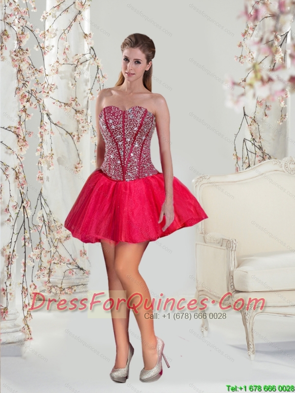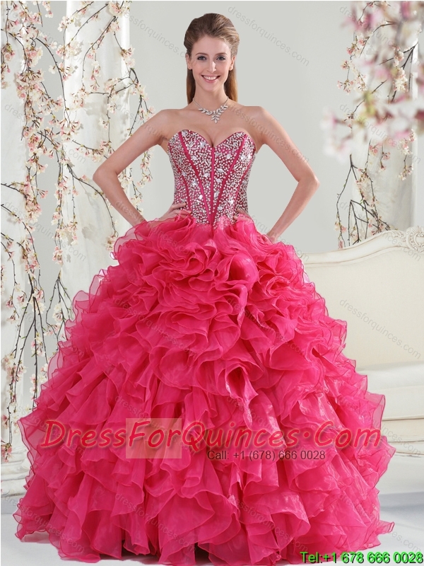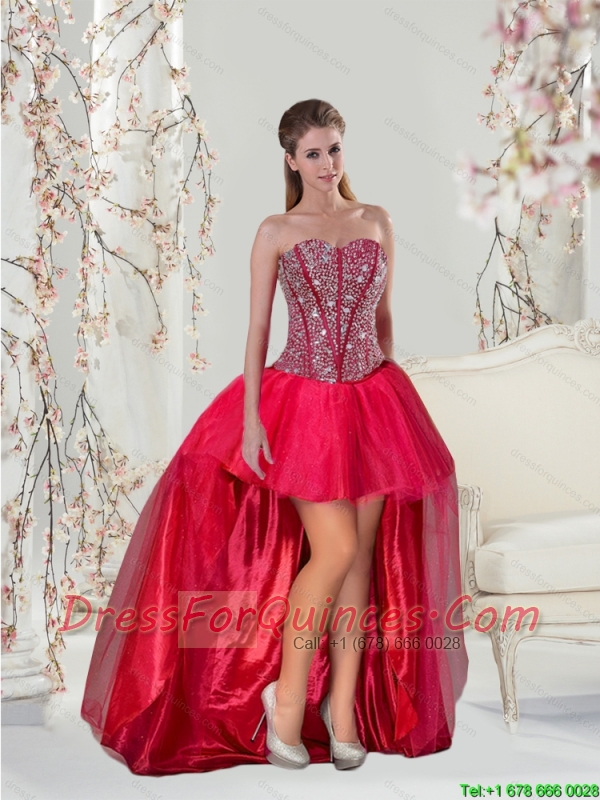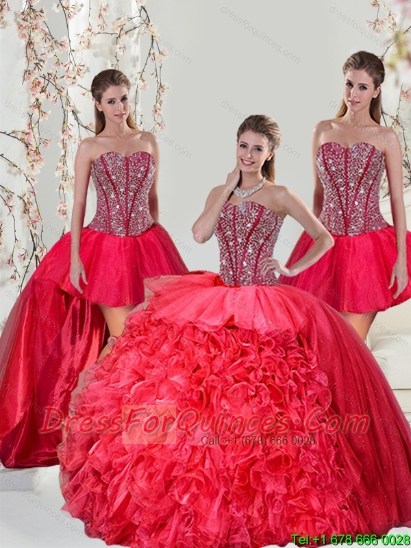 Detachable Beading and Ruffles Red Quinceanera Dresses for 2015