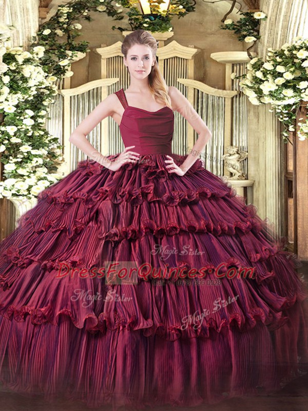 Dramatic Sleeveless Zipper Floor Length Ruffled Layers Quince Ball Gowns