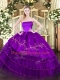Dynamic Purple Organza and Taffeta Zipper Strapless Sleeveless Floor Length Vestidos de Quinceanera Embroidery and Ruffled Layers