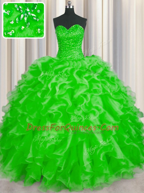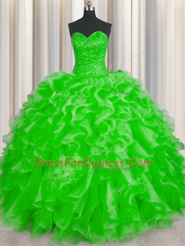 Edgy Sleeveless Organza Floor Length Lace Up Quinceanera Dresses in with Beading and Ruffles