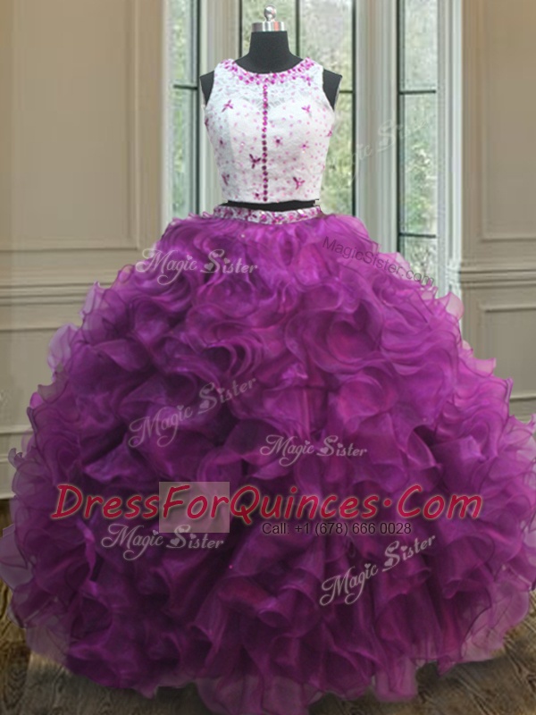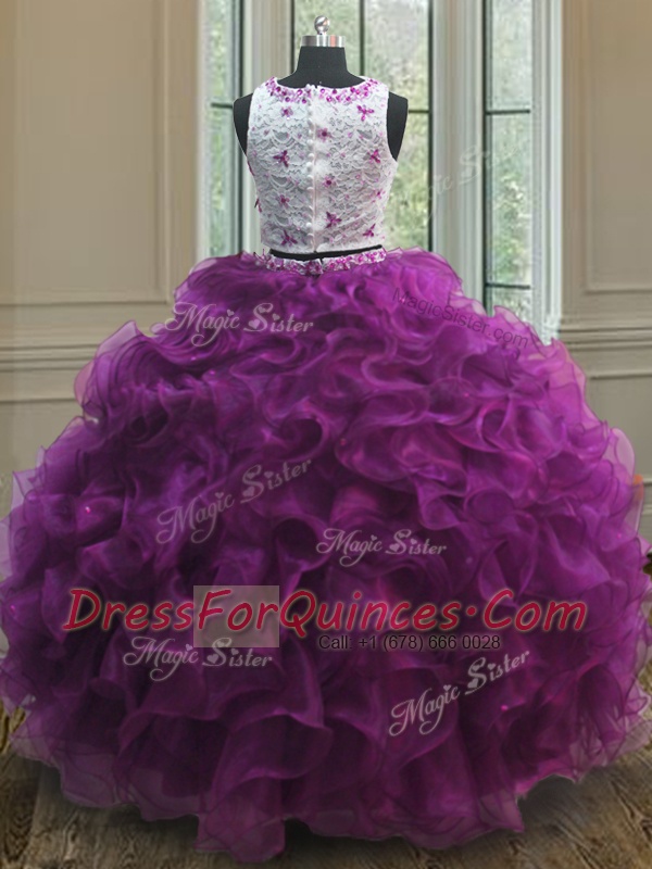 Elegant Scoop Sleeveless Organza 15 Quinceanera Dress Appliques and Ruffles Clasp Handle