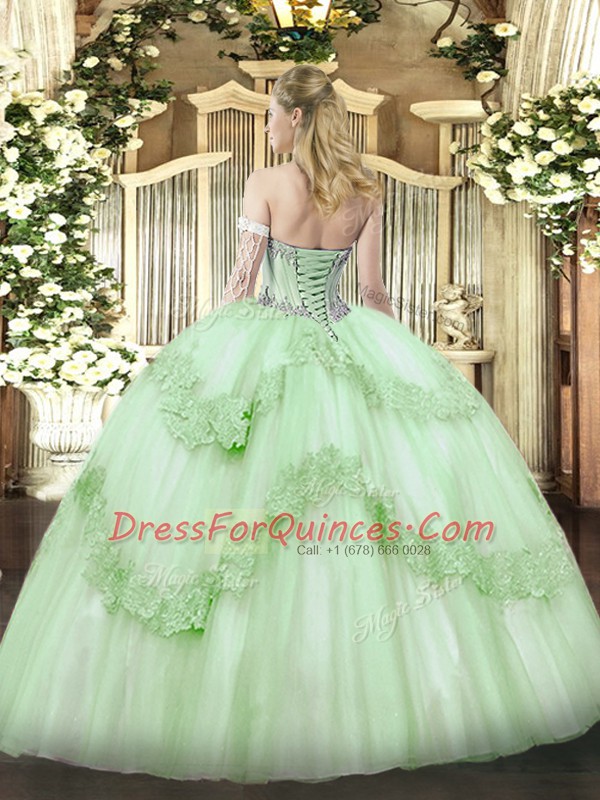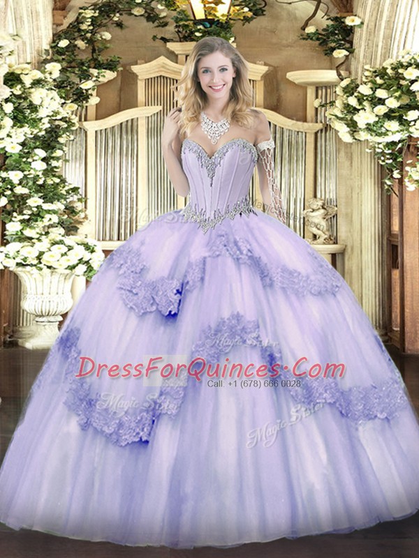 Eye-catching Sweetheart Sleeveless Quinceanera Gowns Floor Length Beading and Appliques Lavender Tulle
