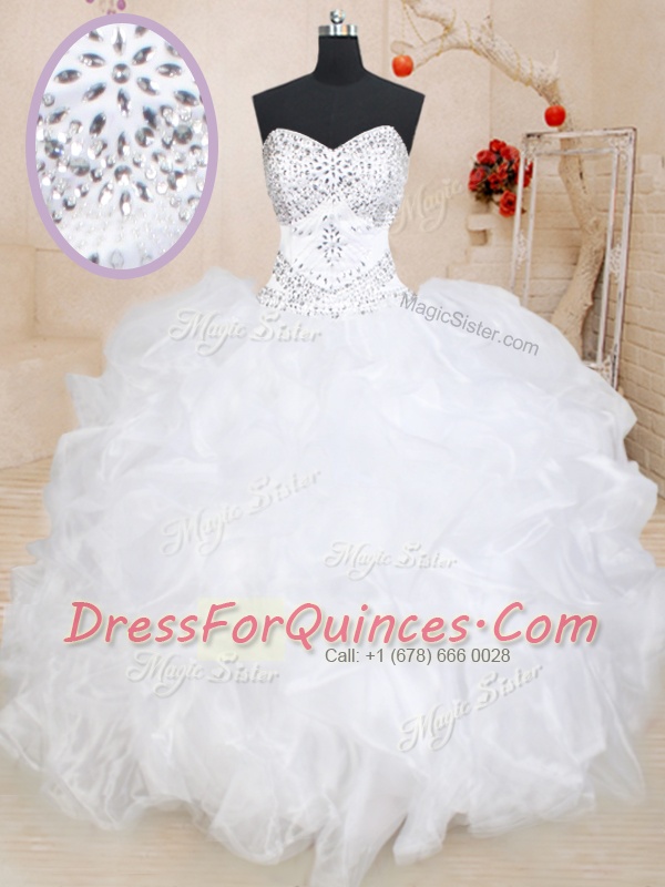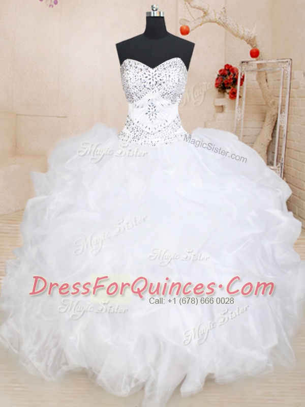 Fine White Organza Lace Up Quinceanera Dresses Sleeveless Floor Length Beading and Ruffles