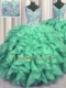 Flirting Turquoise Ball Gowns V-neck Sleeveless Organza Floor Length Lace Up Beading and Ruffles 15th Birthday Dress
