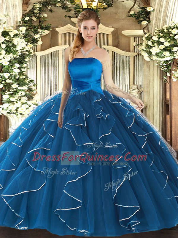 Floor Length Ball Gowns Sleeveless Blue Sweet 16 Quinceanera Dress Lace Up