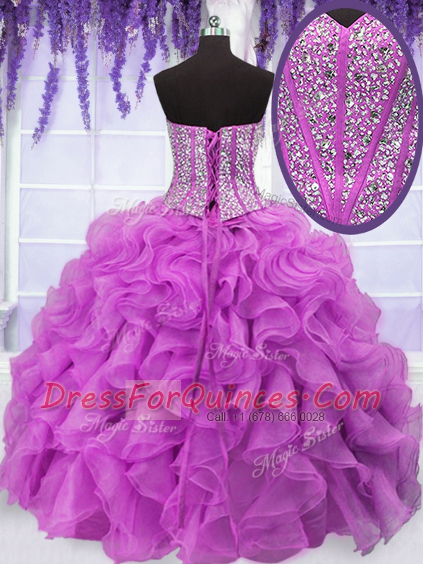 Floor Length Fuchsia Quince Ball Gowns Sweetheart Sleeveless Lace Up