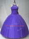 Floor Length Purple 15 Quinceanera Dress Tulle Sleeveless Beading
