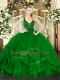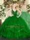 Floor Length Zipper Quinceanera Gowns Dark Green for Military Ball and Sweet 16 and Quinceanera with Beading and Ruffles