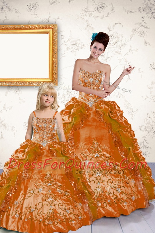 Free and Easy Orange Lace Up 15 Quinceanera Dress Beading and Embroidery and Pick Ups Sleeveless Floor Length