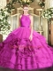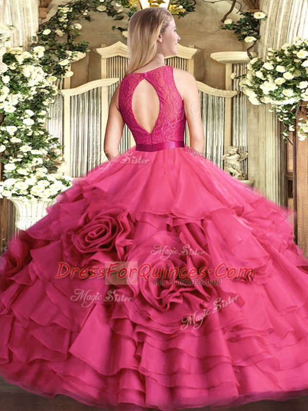 Fuchsia Sleeveless Lace Floor Length 15th Birthday Dress
