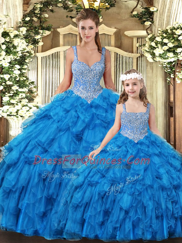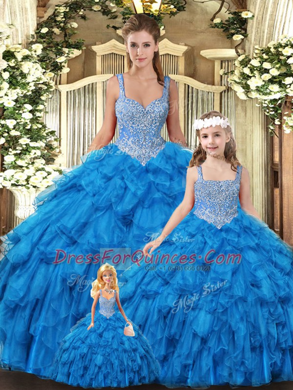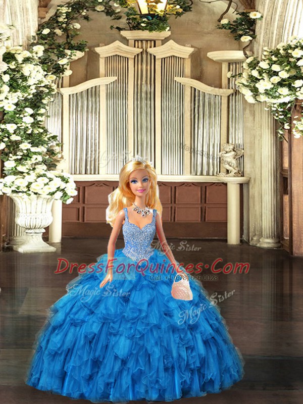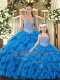 Glamorous Floor Length Teal Vestidos de Quinceanera Tulle Sleeveless Beading and Ruffles