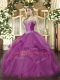 Glittering Fuchsia Sweetheart Lace Up Beading and Ruffles Vestidos de Quinceanera Sleeveless
