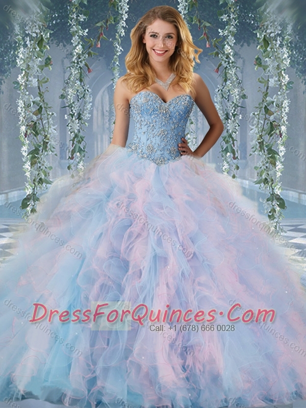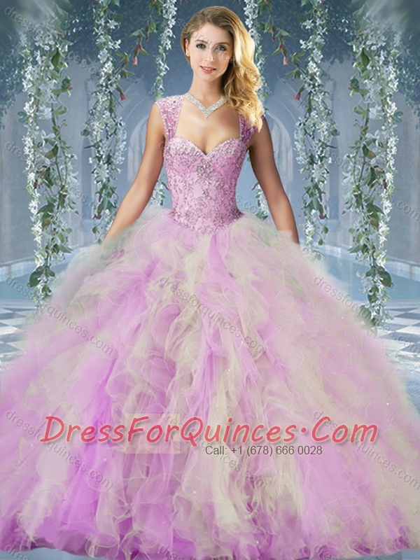 Gorgeous Rainbow Big Puffy Quinceanera Gown with Beading and Ruffles